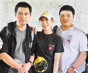 蘇哲芳(正中)與“免費(fèi)午餐”發(fā)起人鄧飛、秘書(shū)長(zhǎng)胡益華合影。受訪者供圖