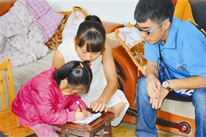 2014年雅安地震后,余浩前往雅安,訪問當(dāng)?shù)毓聝海o導(dǎo)孩子學(xué)習(xí)。