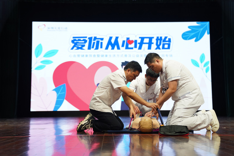 活動現(xiàn)場,健康服務(wù)“干貨”滿滿。國家心血管病中心、阜外醫(yī)院健康教育中心主任楊進剛教授,以及阜外醫(yī)院深圳醫(yī)院周圍血管外科主任陸京伯,分別就心血管健康管理、頸動脈健康等主題,進行了深入淺出、專業(yè)實用的科普講座,提升了現(xiàn)場聽眾的健康知識水平。醫(yī)護人員現(xiàn)場演示心肺復(fù)蘇(CPR)與自動體外除顫器(AED)使用方法,手把手指導(dǎo)實操,強化急救技能;專家團隊同步開展義診,為居民提供“一對一”健康咨詢。